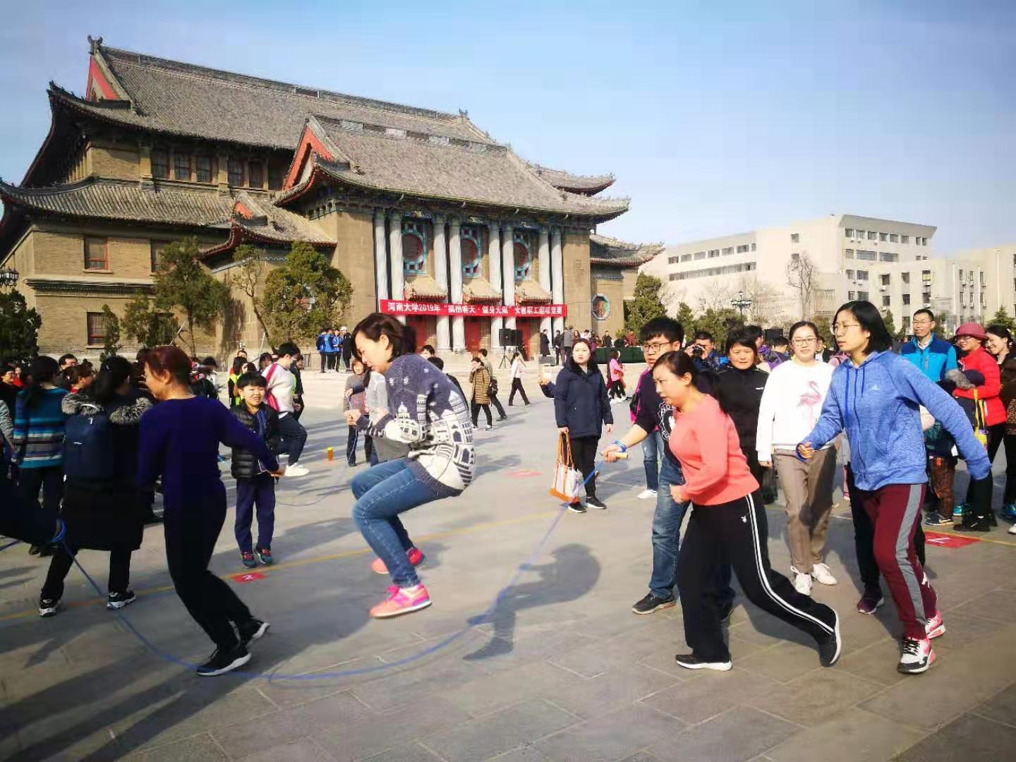 柳色早黄浅,水文新绿微。为庆祝第108个“三八”国际劳动妇女节,3月7日下午,由河南大学工会主办的“拥抱春天•健身无限”女教职工趣味竞赛活动在明伦校区举行。spbo即时比分 参赛队员们齐心协力,配合默契,经过3分钟的努力和坚持,最终取得集体项目跳长绳三等奖的可喜成绩。
