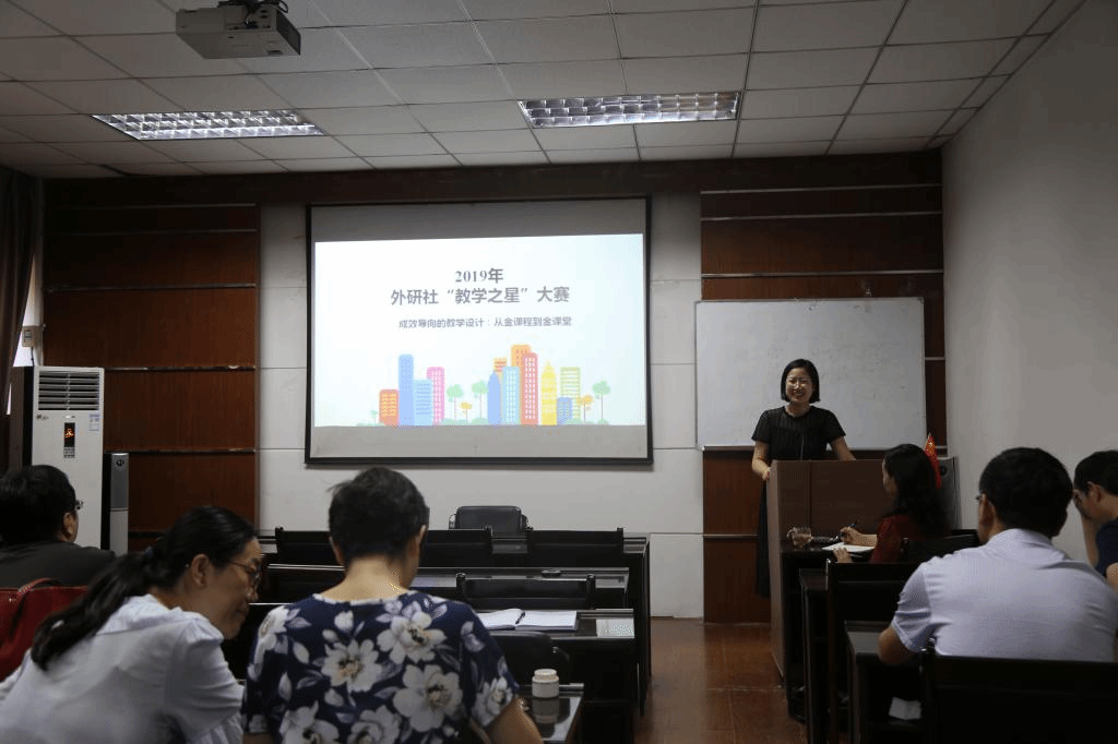 第二个分享主题“‘教学之星’大赛的参赛感悟”由外语部教学负责人谢菲主持。谢菲老师首先介绍了spbo比分 “教学之星”大赛的参赛情况,由李冬青、康蕊、吉奕卫和谢瑾四位老师组成的团队在2019spbo比分 “教学之星”大赛中获得了全国一等奖,并受到了评委会主席文秋芳老师的高度评价。李冬青老师作为参赛团队负责人对团队的整个赛程进行了回顾,和大家分享了在参赛过程中的所学所思,尤其是团队参加比赛所面临的挑战、产出成果与宝贵经验。从金课程到金课堂的理念让与会老师们受益匪浅。