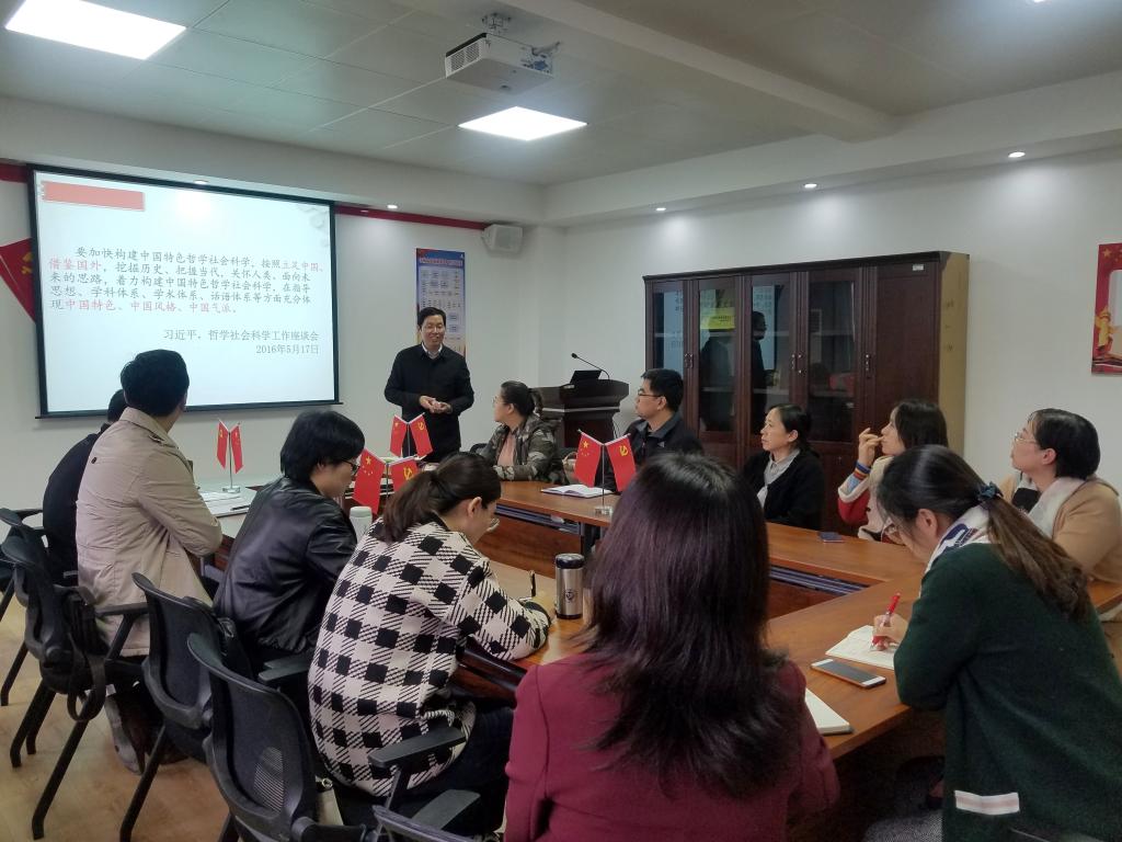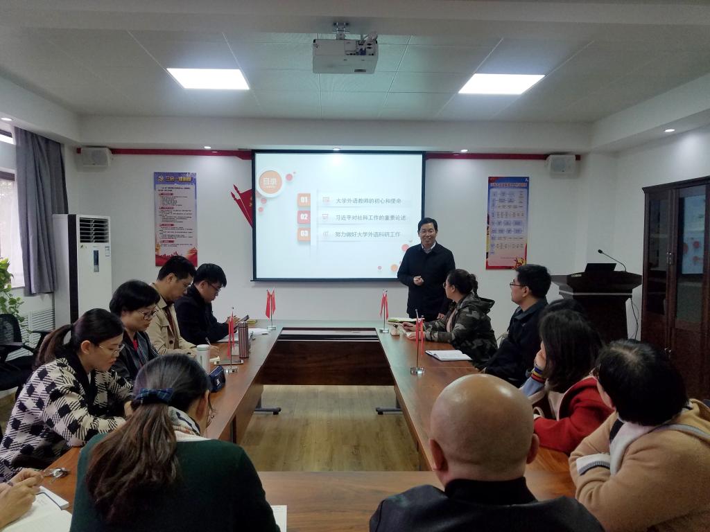 为深入贯彻落实习近平新时代中国特色社会主义思想和党的十九大精神,认真学习贯彻习近平总书记在“不忘初心、牢记使命”主题教育工作会议上的重要讲话精神,根据学校“不忘初心、牢记使命”主题教育工作安排,10月16日下午,spbo即时比分 副主任杨剑波同志以“不忘初心、牢记使命,努力做好大学外语科研工作”为题为外语部第二党支部的教职工党员同志们进行了党课辅导。外语部党总支书记、主任关合凤同志参加活动并积极发言。