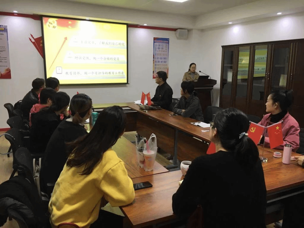 第三党支部书记杨霞同志以“重温党章、不忘初心,做合格的教育工作者”为主题,为第三党支部全体党员讲授“不忘初心、牢记使命”主题教育专题党课。