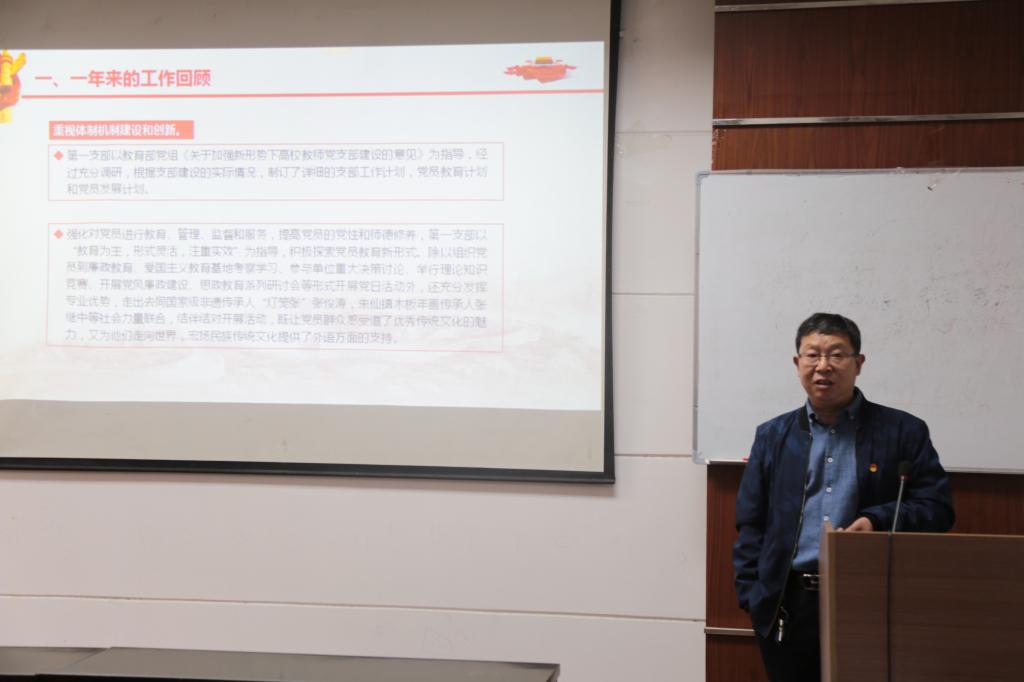 刘兴沛首先回顾了第一党支部自2018年9月换届以来所做的工作:一、突出支部政治功能,增强党员“四个意识”。二、重视党员发展工作。三、重视体制机制建设和创新。四、重视对困难党员和教师的关怀帮扶;五、重视交流和沟通。在教学、科研、管理、服务等领域取得了一定的成绩。