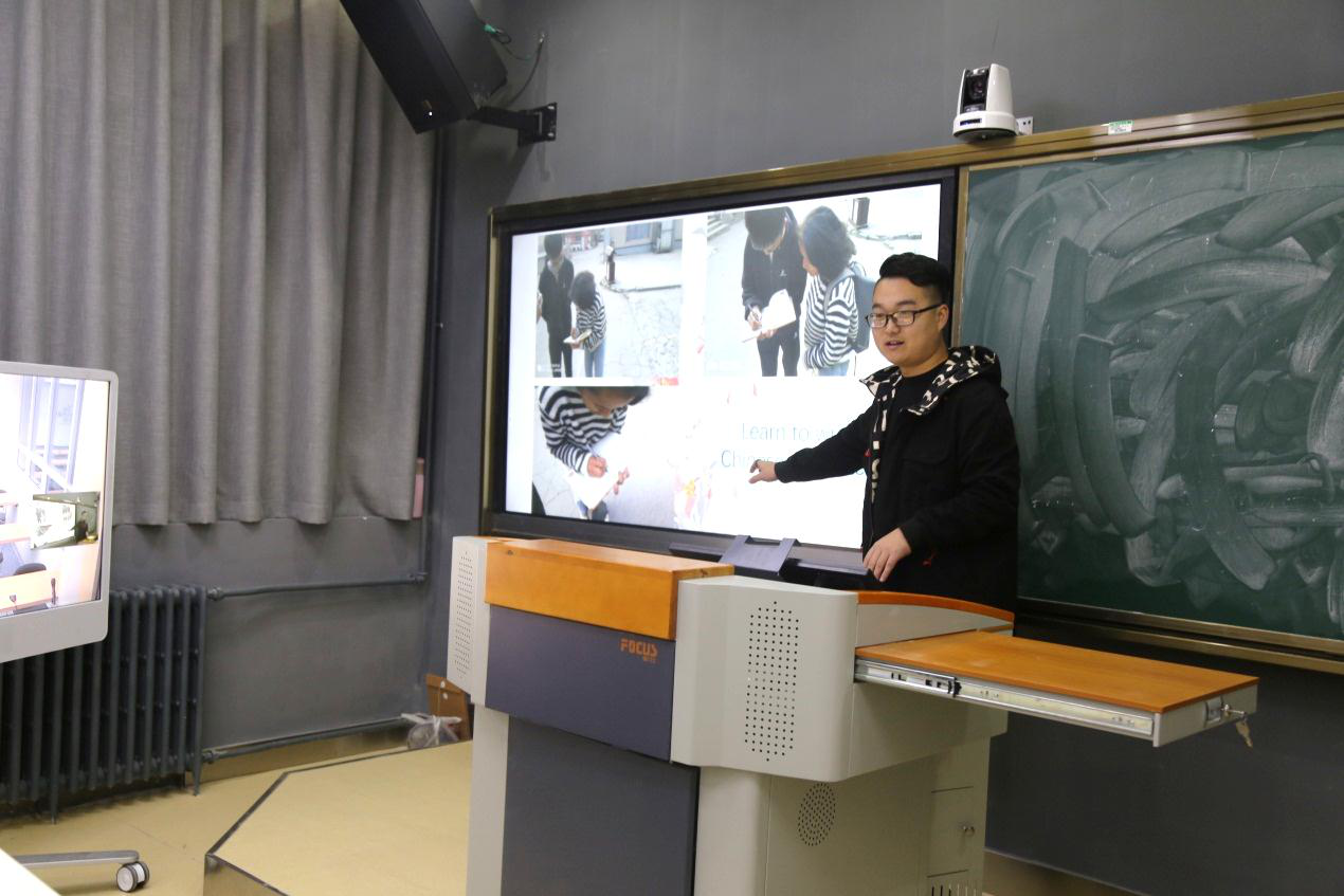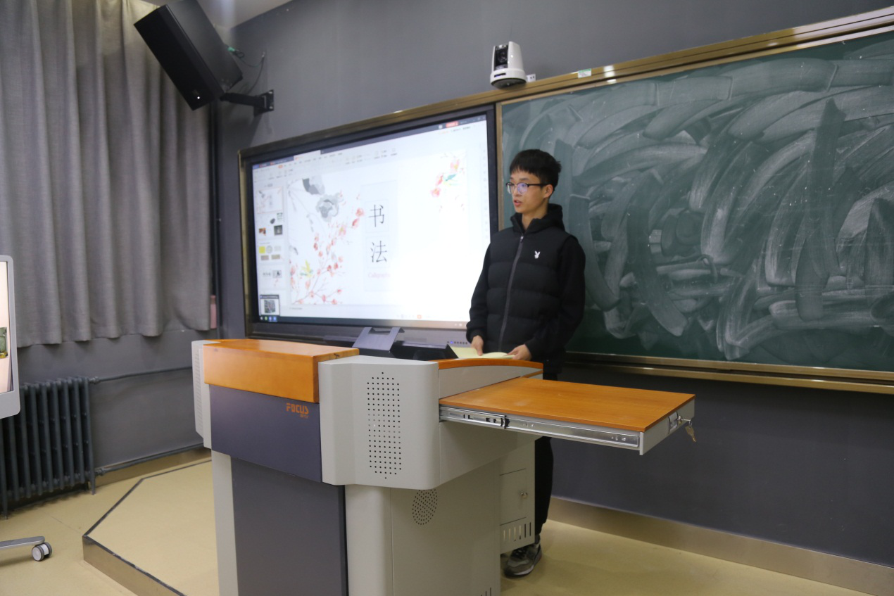 在此之前,已经有两组同学完成课程学期小组任务——邀请外国人体验中国文化。第一组的同学们选择了《论语》中三段经典的对话,用英文演绎和拍摄成小视频,邀请外国留学生们观看,并和他们介绍了论语和儒家思想。第四组的同学们则选择了书法作为主题,向外国留学生介绍中国的文房四宝和书法的不同种类等等,并热情地教他们学写汉字:“友谊长存”。