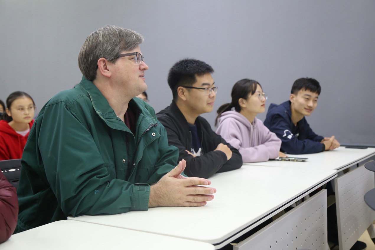 接下来大家围绕中西方文化的一些差异做了交流,来自阿克伦大学、目前在河南大学读博士的柯梦桐也和大家分享了他在中国感受到的一些文化差异,黄河文明的同学也向阿克伦大学的同学们提问了解美国的人的一些生活习惯。