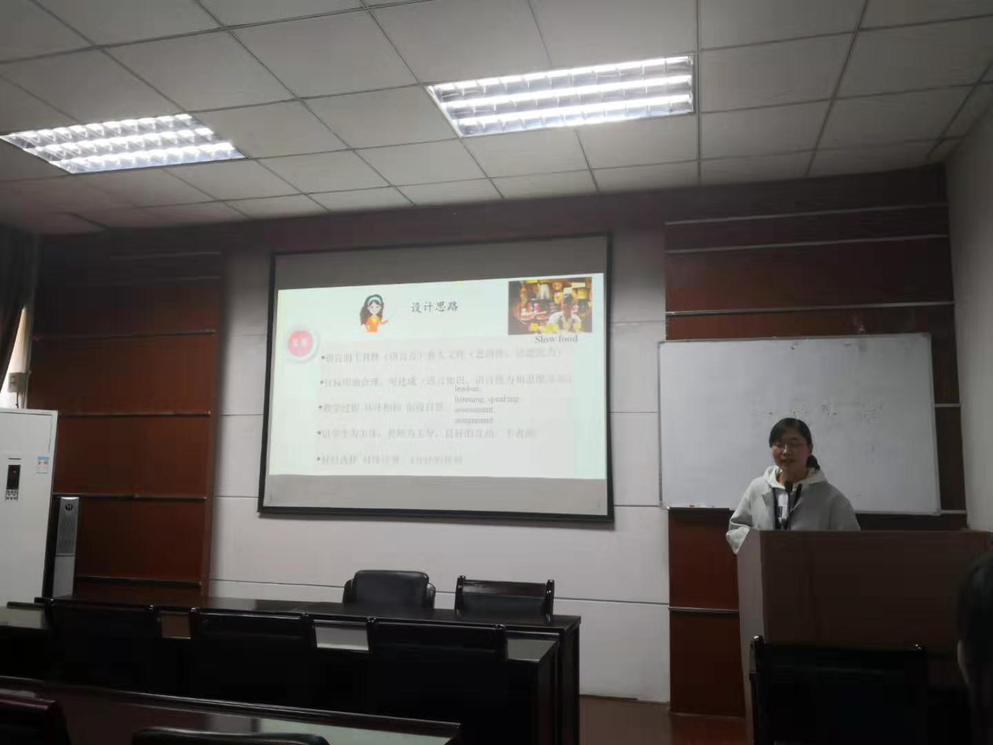 11月14日下午,spbo即时比分 “向身边的榜样学习”活动在外语部一楼大会议室举行,本学期在各类省级教学竞赛中获奖的四位教师给全体教职工分享了他们的参赛心得并做教学展示,该活动由spbo即时比分 副主任谢菲主持。