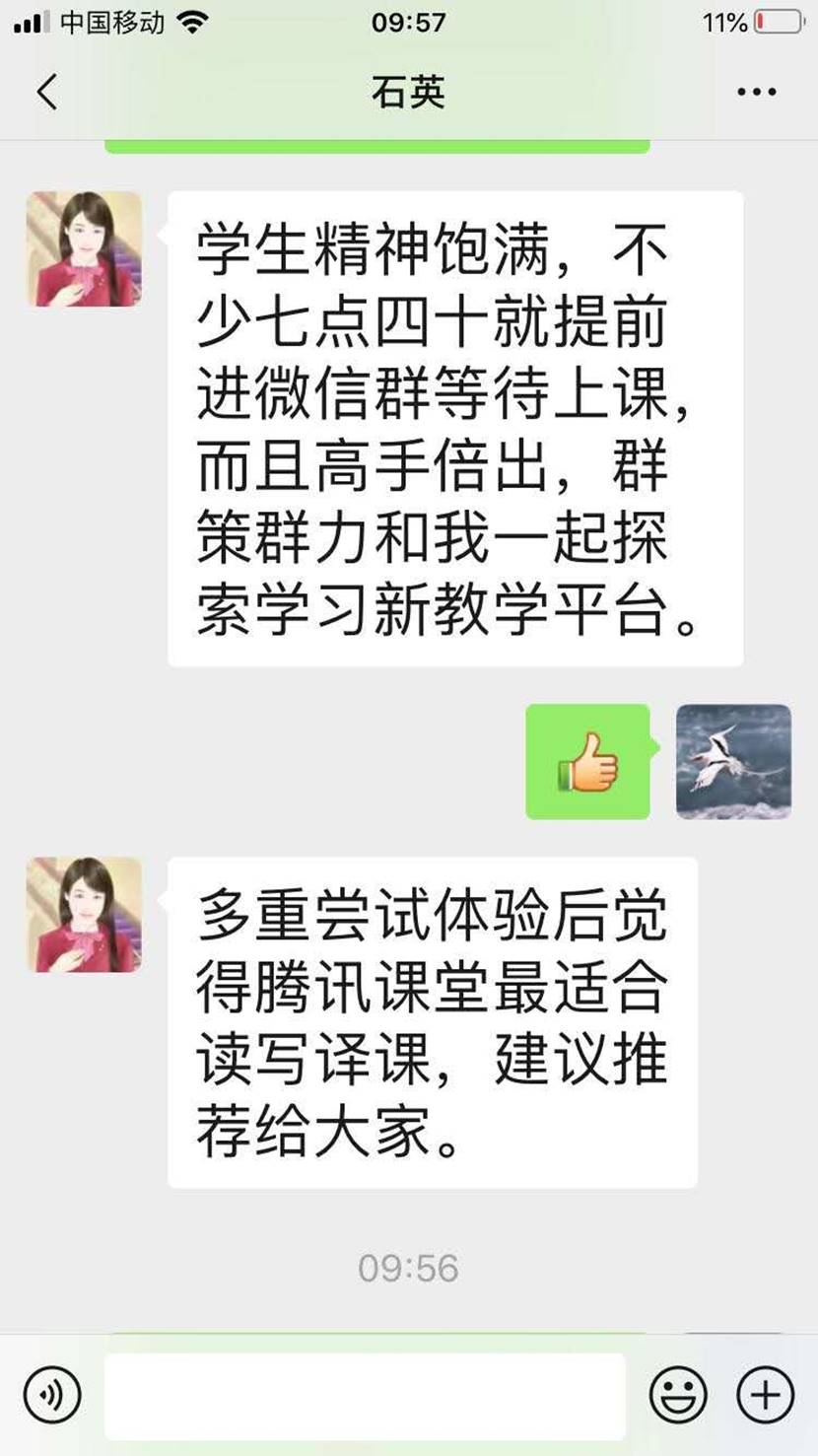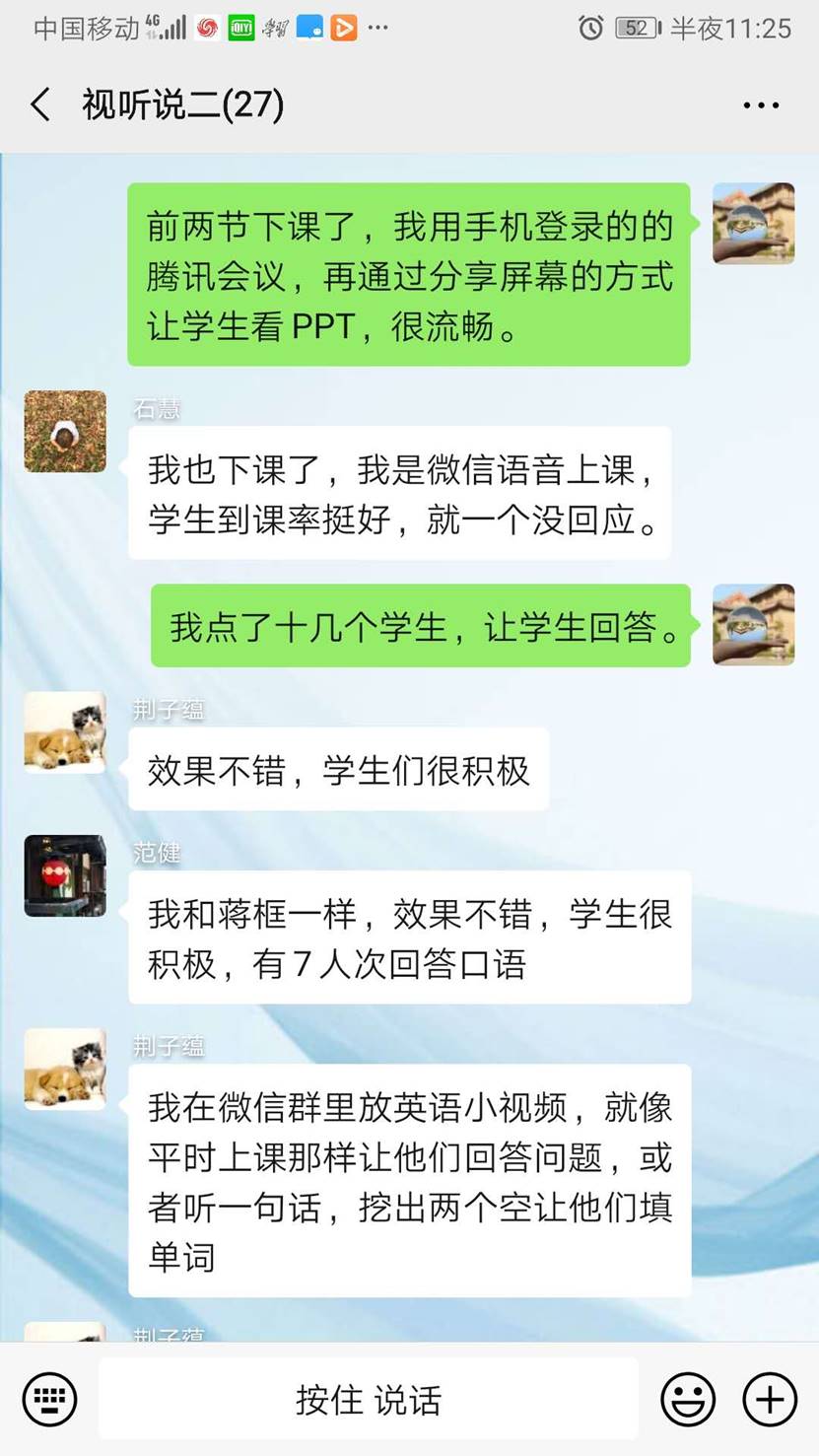 (图为课后老师们第一时间在教研室群里分享教学感受)