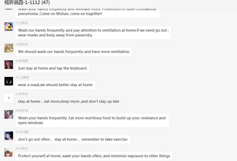 (图为荆子蕴老师的课上学生们在讨论疫情期间的注意事项)