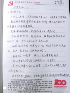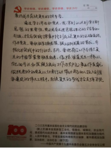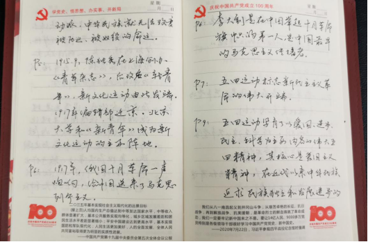 党史学习教育开展之初,外语部党总支便为全体党员提供了习近平总书记《论中国共产党历史》《毛泽东、邓小平、江泽民、胡锦涛关于中国共产党历史论述摘编》《习近平新时代中国特色社会主义思想学习问答》《简明河南党史》等学习材料,确保党员学习材料全覆盖。外语部党员同志以积极的态度与饱满的热情投入党史学习教育,学习氛围浓厚,接下来让我们一起看一看他们的学习笔记和心得。