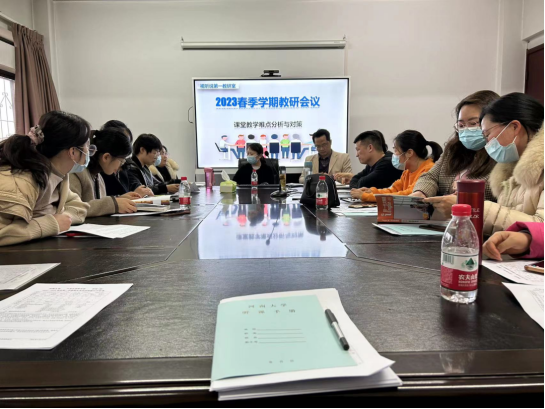 教而不研则愚,研而不教则虚。为进一步营造浓厚的教研氛围,促进教育教学水平的提升,扎实推进2023年春季学期各项教学工作,3月16日下午spbo即时比分 视听说第一教研室全体教师在部会议室开展了 “课堂教学难点分析与对策” 主题教研会议,会议由教研室主任郭皓主持。