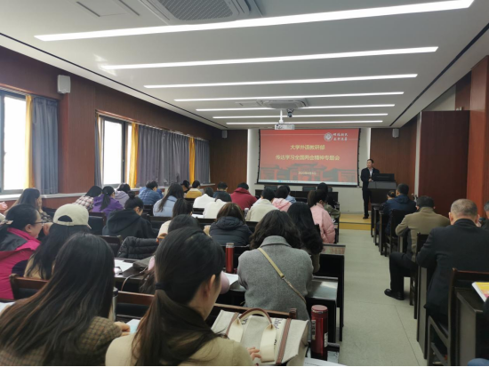杨剑波首先带领全体教师学习了习近平总书记两会期间重要讲话精神和《政府工作报告》,同时结合《spbo即时比分 ‘十四五’事业发展规划》,畅谈了将全国两会精神深入贯彻到推动外语教学高质量发展中的有关启发和思考。他表示,河南大学正处于“双一流”“双航母”战略叠加的关键攻坚期,外语部全体教师要扛起责任,深入学习宣传贯彻习近平总书记在两会期间的重要讲话精神和全国两会精神,以高质量党建引领事业高质量发展,全面深化综合改革,大力实施人才培养质量提升工程、教科研水平提升工程、师资队伍建设工程、国际化推进工程、空间硬件提升工程,思想政治提升工程,为学校建设贡献应有力量。
