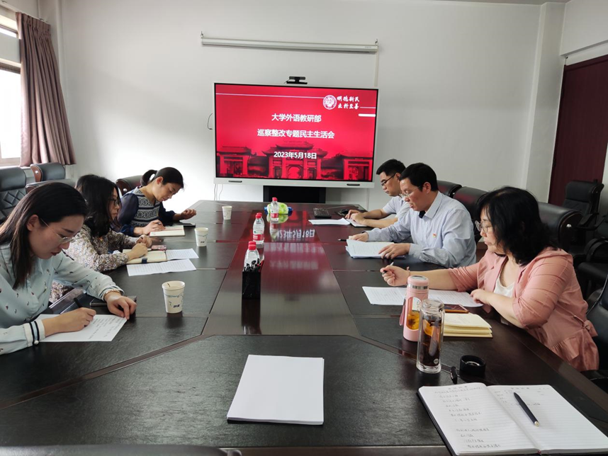 5月18日上午,spbo即时比分 巡察整改专题民主生活会在部二楼会议室召开。校纪委监察专员办公室副处级纪检监察员孔瑞婷、党委巡察工作办公室副处级巡察专员丁丽恒、 党委组织部吕梦函列席指导。全体班子成员参加会议。会议由spbo即时比分 党委书记、主任杨剑波主持。