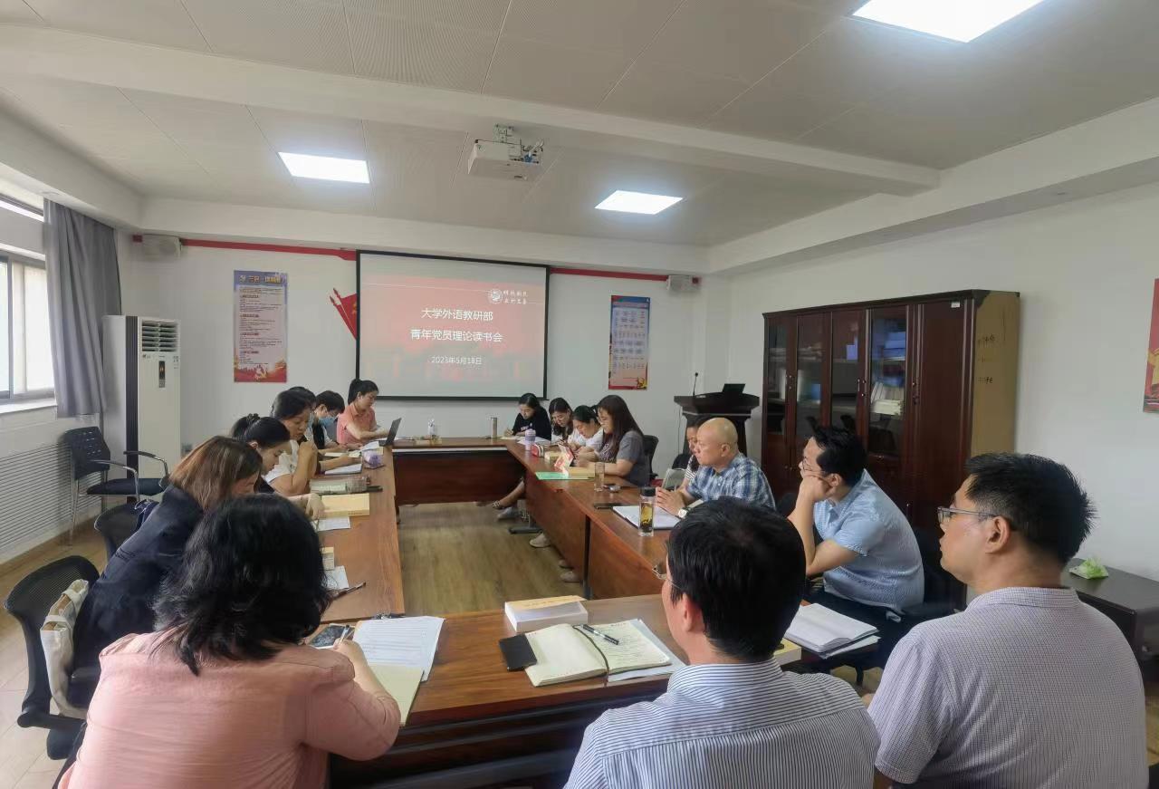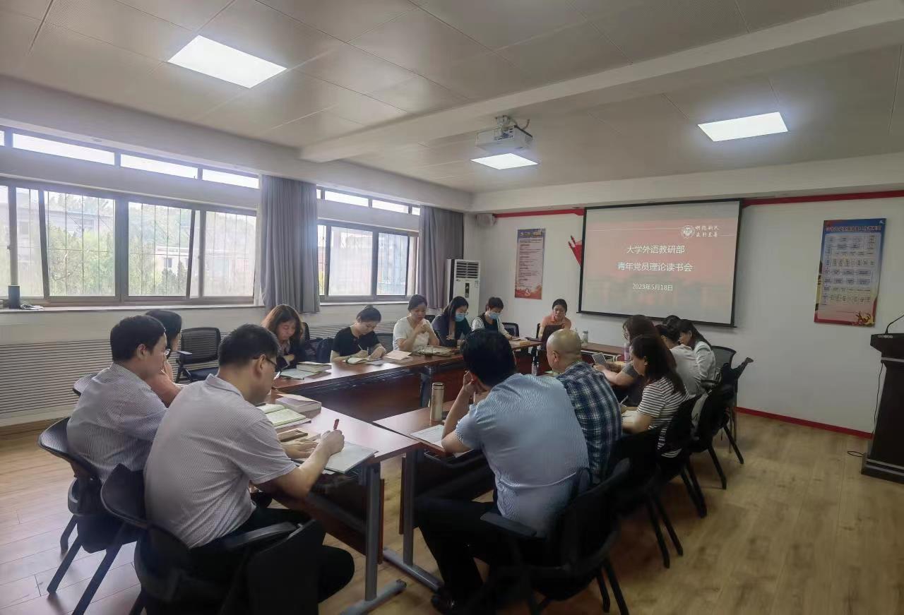 为深入开展学习贯彻习近平新时代中国特色社会主义思想主题教育,大力推动大学英语课程思政建设,5月18日下午,spbo即时比分 在部党建活动室召开青年党员理论读书会,读书会主题为坚定“四个自信”,做好大学英语课程思政。部领导班子、青年党员代表、课程思政比赛获奖教师、文化课程团队负责人及课程思政样板课程负责人参与会议。会议由部党委副书记、副主任蒋框主持。
