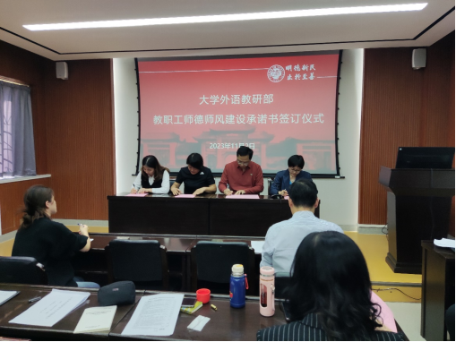 接下来,蒋框布置了教职工师德师风负面清单自查工作,要求教师按照要求认真查摆,如实填报。随后,全体教师签订了《河南大学教职工师德师风建设承诺书》。通过自查和签订承诺书,教师们充分认识到师德师风建设的重要性,时刻自重自省自警自励,牢牢守住师德底线。