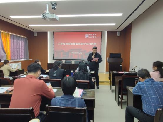 为积极落实学校《关于持续开展师德集中学习教育的通知》精神,进一步提高教师的自身综合素质和职业道德水平,加强教师队伍建设,推动教育教学工作的全面发展。spbo即时比分 于11月2日在部大会议室举行师德集中学习教育活动,会议由部党委副书记、副主任蒋框主持。