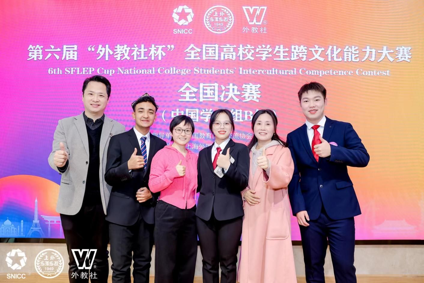 “外教社杯”全国高校学生跨文化能力大赛是由中国教育国际交流协会指导,上海外国语大学主办,上海外语教育出版社承办的全国性赛事,是学生参与数量最大、影响力最广的外语赛事之一,被列入《2023全国普通高校大学生竞赛分析报告》竞赛目录。本次比赛分全国决赛、总决赛两个环节。52支中国学生队伍和20支国际学生队伍从全国23个省市的741所高校中脱颖而出,晋级全国决赛。在与其他参赛队伍的强强比拼与对决中,我校团队脱颖而出,成功进入12月2日下午的总决赛。总决赛中,我校选手稳扎稳打,沉着应战,展示了扎实的语言功底、丰富的知识储备、良好的团队协作精神和随机应变的能力,最终获得全国一等奖的好成绩。