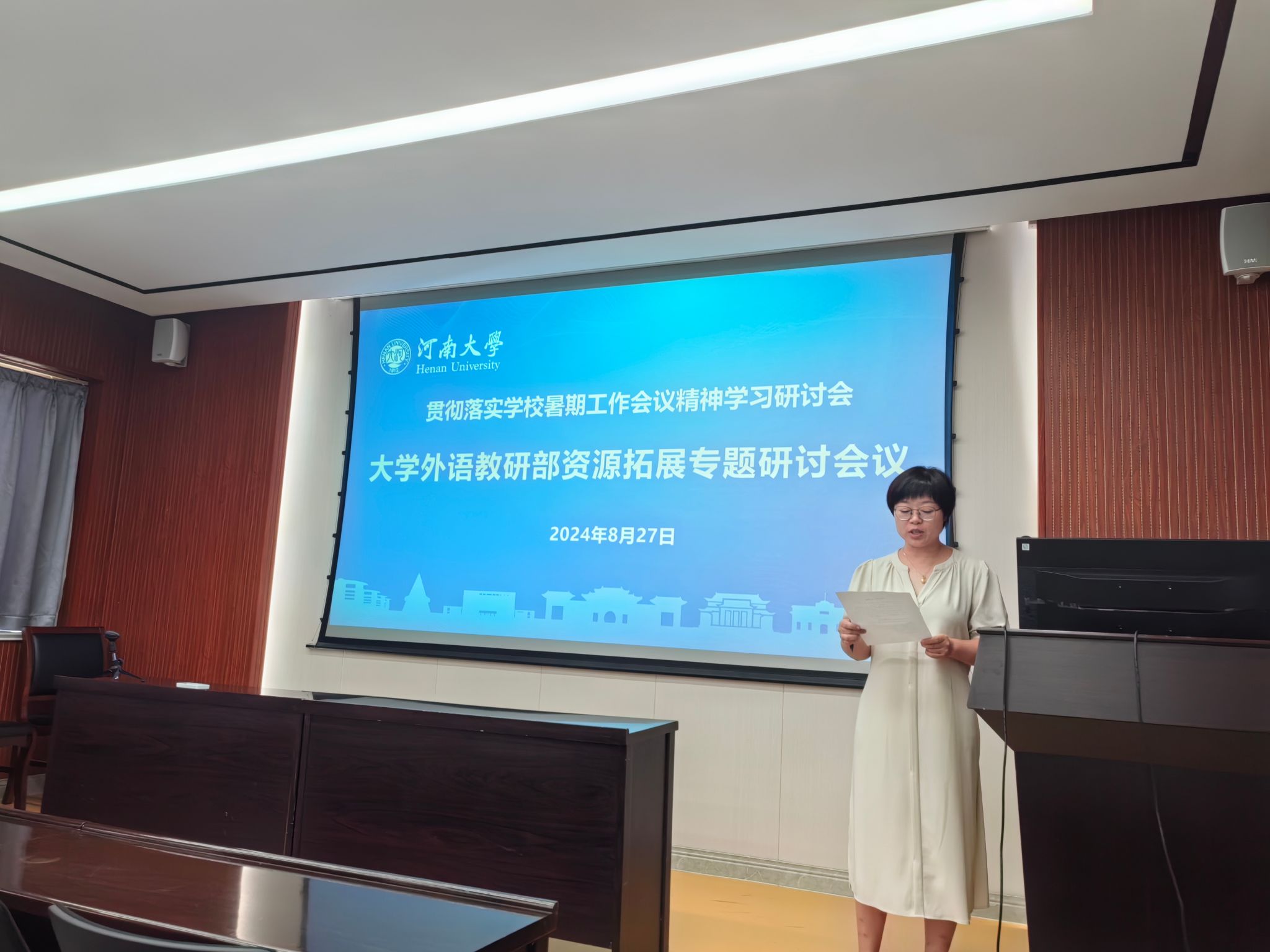 部党委副书记、副主任蒋框传达了学校暑期工作会议精神,并介绍我部目前资源拓展情况以及存在问题。对进一步做好我部英语培训工作,蒋框提出:一要更新课程,各课程团队要积极外出培训,接收新知识。二要提高质量,完善课程考核机制。三要开展线上课程,探索新方式。四要高度重视,全体人员都应当把资源拓展工作作为履职尽责的重要内容,努力为学校资源拓展工作做贡献。