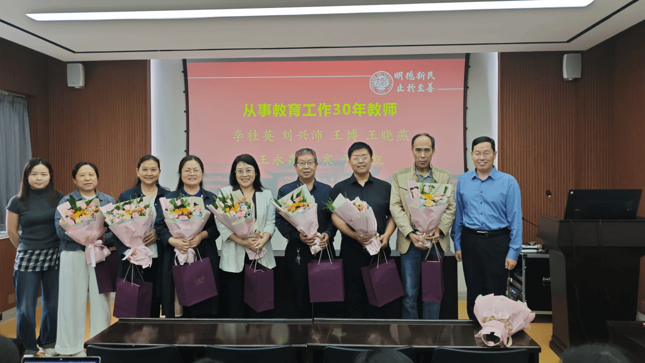 大会在庄严而热烈的氛围中拉开帷幕。会议首先向将最美好年华奉献给党的教育事业和spbo即时比分 的资深教师们致敬。李桂英、刘兴沛、王博、王晓燕、王永森、于寒、于建凯等七位从教30年的教师登台,部党委书记、主任杨剑波为他们颁发了纪念品。新入职教师张露露代表全体青年教师向他们敬献鲜花,饱含深情地表达了对前辈们崇高师德和育人成就的敬意。