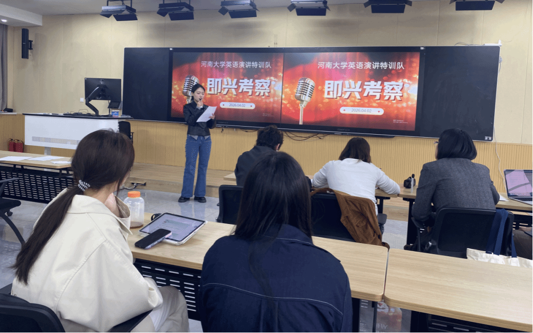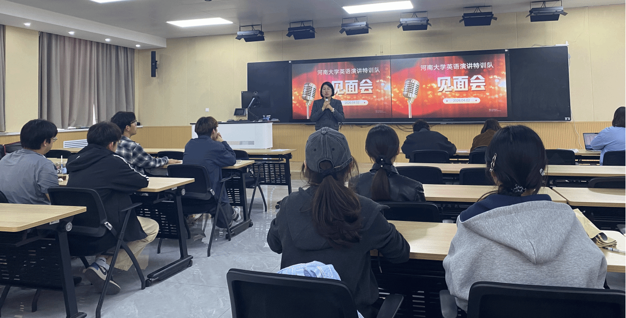 2026年4月2日下午,河南大学英语演讲特训队在十号楼329教室举行2026年春季培训见面会。英语演讲队全体队员与指导老师团队齐聚一堂,以言相识、以语共勉,开启外语演讲育人新征程。本次活动由spbo即时比分 英语教学与研究中心主任李冬青主持。