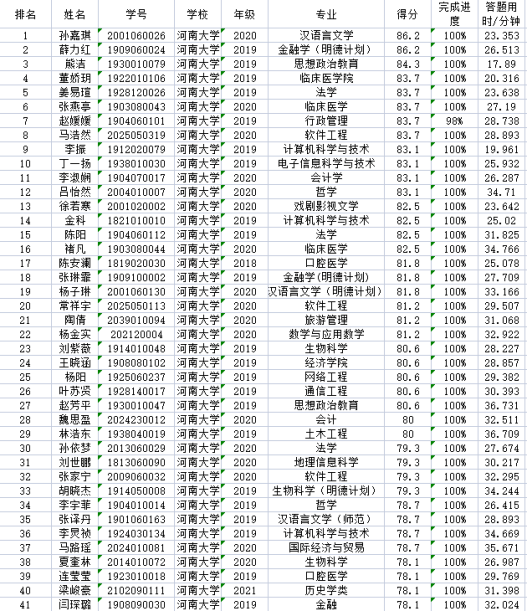 河南大学第二届词汇大赛暨“外教社·词达人杯”英语词汇能力大赛校赛圆满结束,经核算,校赛取成绩排名 5%晋级省赛,参赛选手的得分和排名由“词达人”系统自动产生;若出现相同成绩,系统将依据答题时间确定排名先后,答题用时短的选手排名在前。