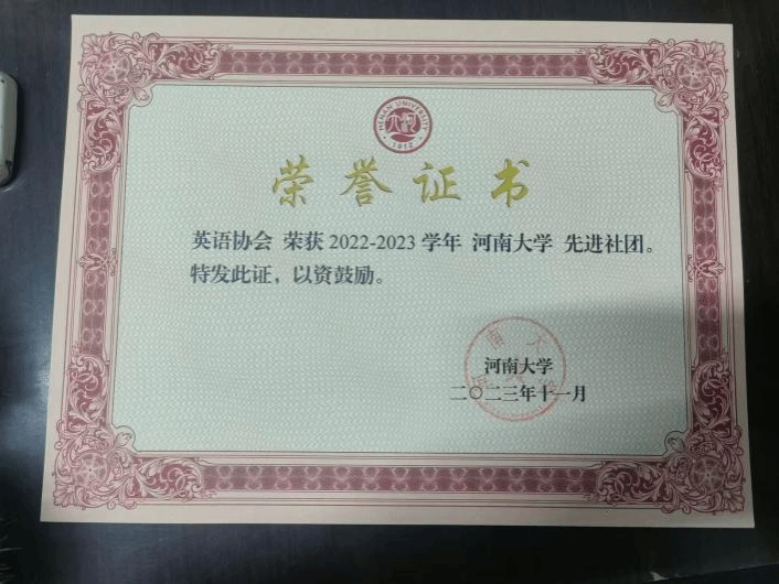 2023年英语协会被评为“2022~2023学年河南大学先进社团”